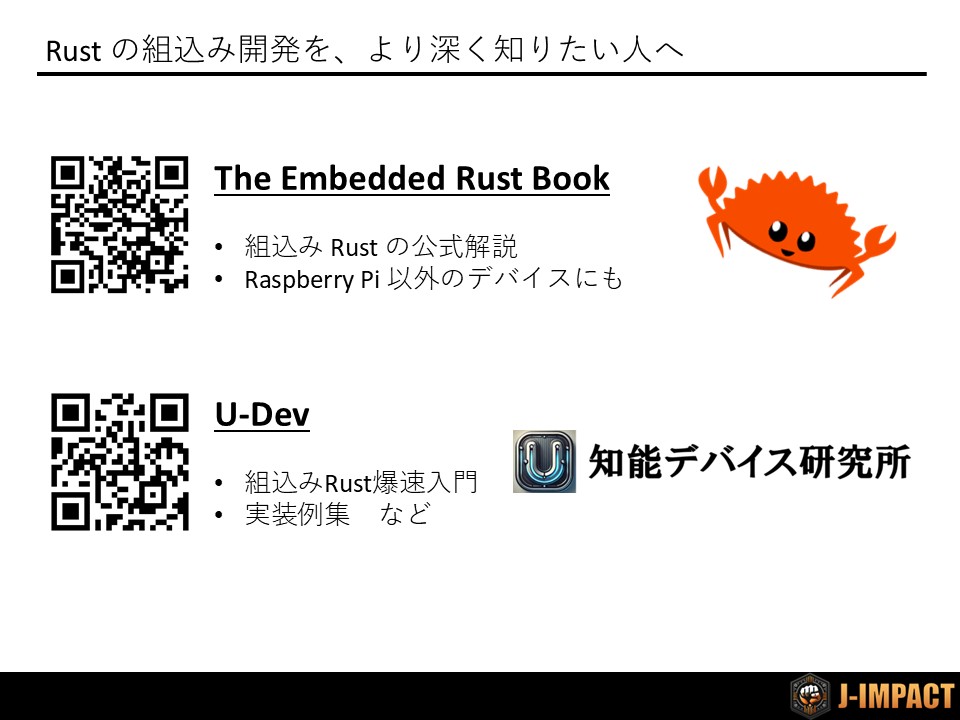また、U-Dev(U-知能デバイス研究所)では、爆速入門や実装例集などの組込みRust関連記事をたくさん公開しています。